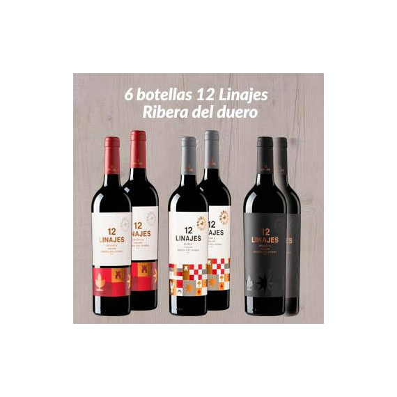 2 botellas 12 Linajes roble, 2 botellas 12 Linajes crianza, 2 botellas 12 Linajes reserva.
